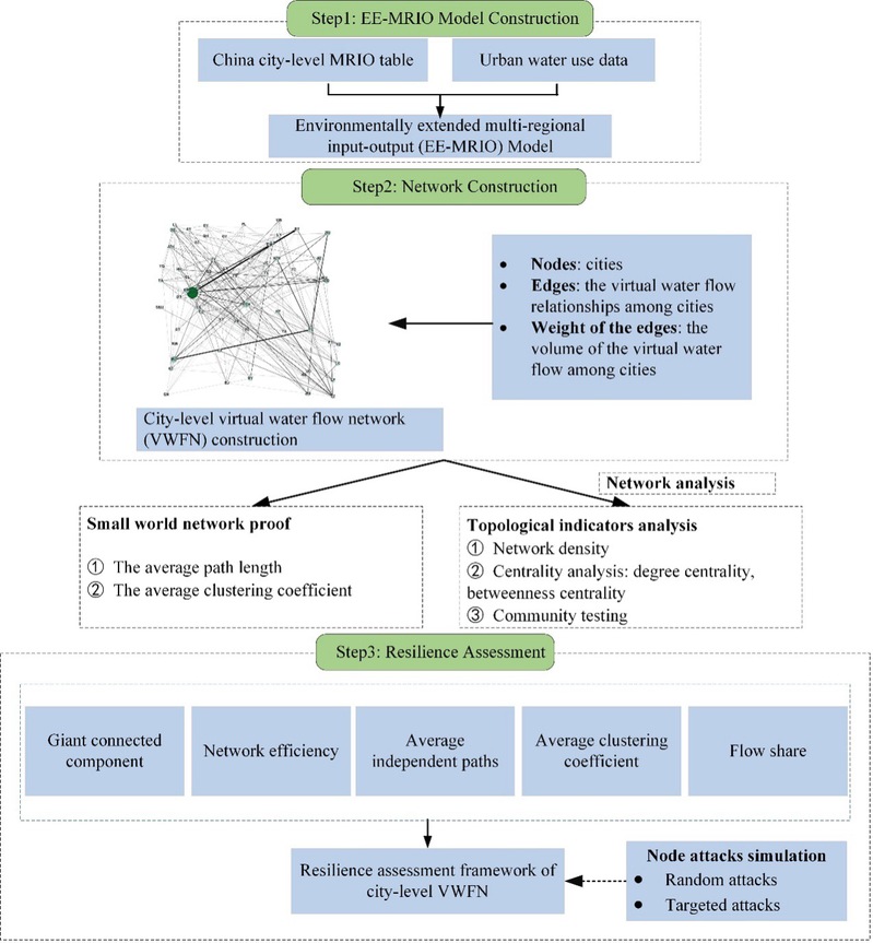 在全球气候变化与城市化加速的背景下,水资源短缺已成为制约区域可持续发展的关键问题。黄河流域作为中国重要的生态屏障和农业产区,长期面临水资源供需矛盾。传统的水资源管理多聚焦于实体水调配,而忽视了隐藏在商品贸易中的“虚拟水”流动(即生产商品所消耗的水资源)。在此背景下,如何有效量化虚拟水网络的韧性并提升其应对突发性冲击的能力,仍是当前研究中亟待深入探索的重要方向。